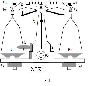 橫梁、支柱、底盤、托盤及吊耳構成。物理天平的構造如圖1所示,在橫梁上裝有三角刀口