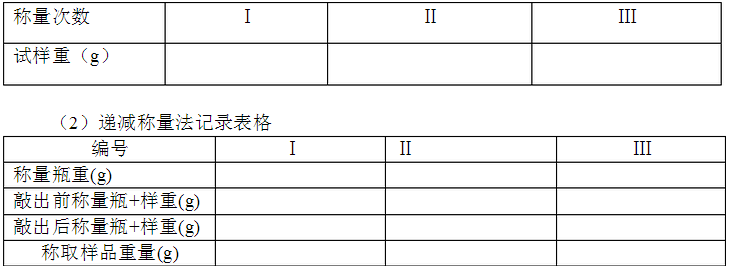 (1)固定稱量法記錄表格