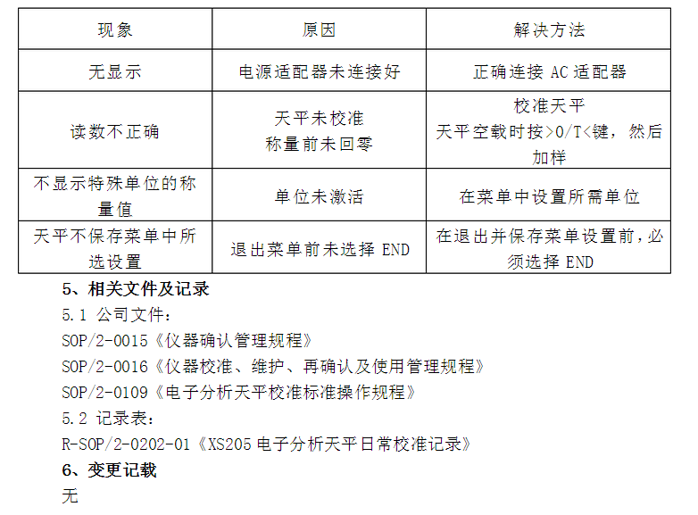 4.6.3 必要時,可使用沾有溫和型清潔劑的濕布擦洗。 4.6.4 經(jīng)常更換天平室內(nèi)的硅膠,保持室內(nèi)清潔干燥。 4.6.5 可能出現(xiàn)的問題