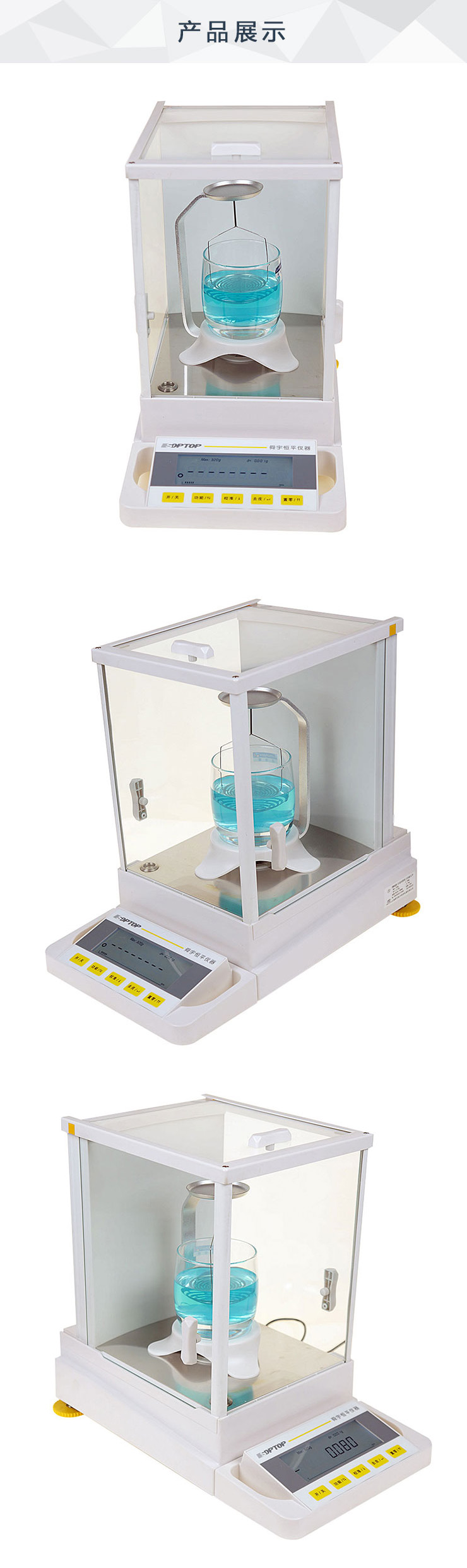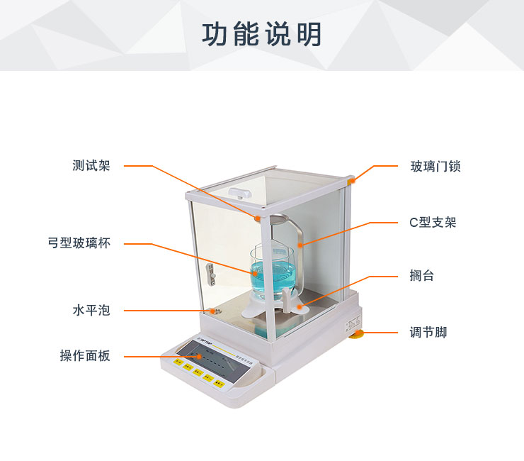 1、電子天平配合密度裝置,測(cè)量精度達(dá)到千分之一